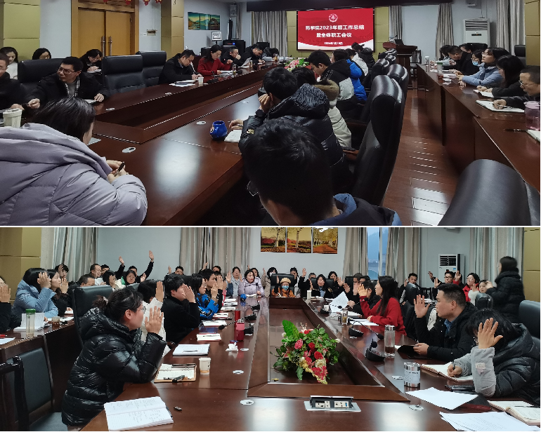 随后,李飞分别解读了学校和学院2023年度绩效工资分配方案。全体职工举手表决,一致通过学院的绩效分配方案。